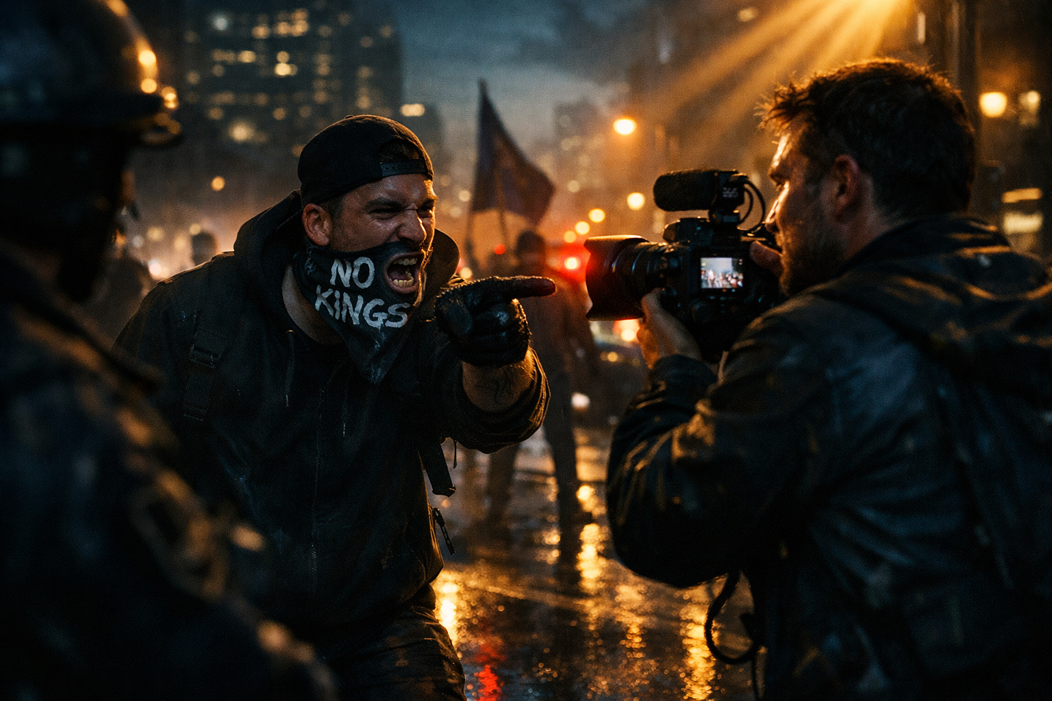 A late-night confrontation at a “No Kings” protest in Jim Thorpe, Pennsylvania, turned volatile when a demonstrator threatened and shoved Breitbart News video producer Matthew Perdie at approximately 00:03 UTC on March 29, 2026. The incident, captured on video, shows explicit threats escalating into physical contact as press and protesters intermingled at close range on public streets.