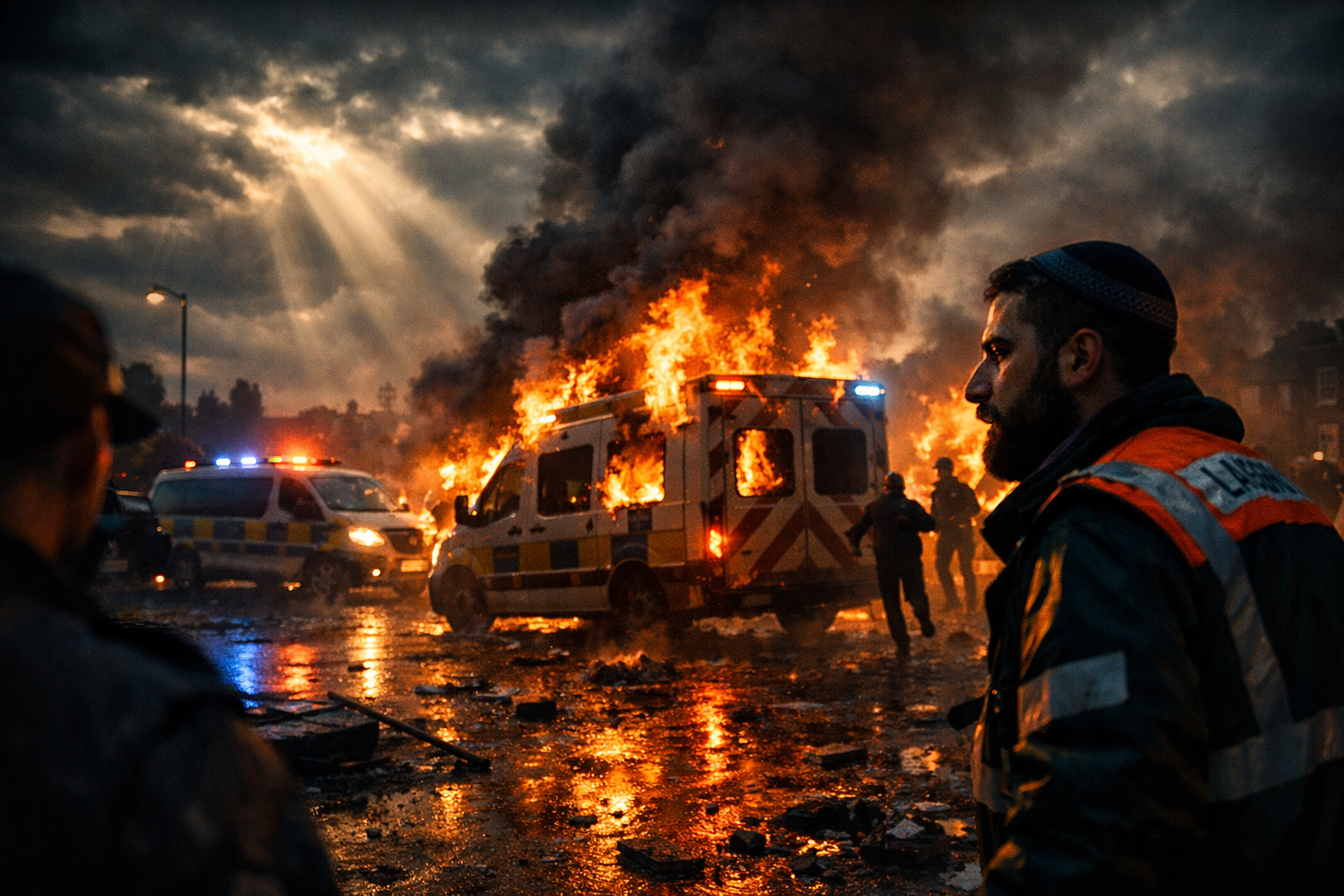 The shock hit before sunrise: multiple ambulances operated by a Jewish volunteer emergency service in London were set ablaze, disabling vital vehicles and jolting a community already on edge. Police moved fast to classify the incident as a suspected antisemitic hate-crime arson, with forensic teams on site and patrols expanded around faith-linked facilities. No injuries were reported, but the strike landed where it hurts—on trusted, culturally competent responders that fill gaps in the city’s medical safety net.