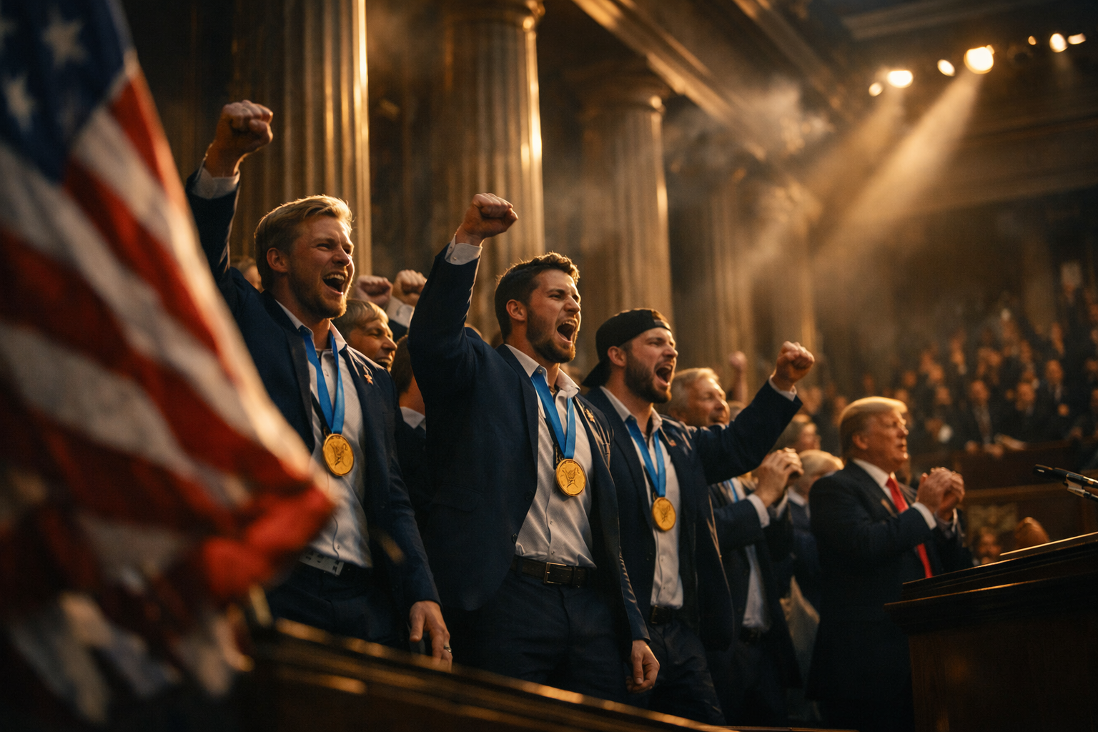 That’s not just a feel-good cameo—it’s a message delivery system. In a night designed to frame the nation’s direction, a gold-medal team becomes living proof of a “winning America” storyline, whether the room agrees on the meaning or not.